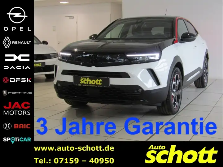 - Weiteres: Reifen-Reparaturkit, Außenspiegel elektr. verstell- und heizbar, elektr. anklappbar, Elektron. Stabilitäts-Programm Plus (ESP), Heckleuchten LED, Scheibenwischer mit Regensensor, Schadstoffarm nach Abgasnorm Euro 6d, Scheinwerfer LED, Geschwindigkeits-Regelanlage (Tempomat) mit Abstandsregelung und Stopp-Funktion, Dachspoiler, Außenspiegel elektr. verstell- und heizbar, elektr. anklappbar, Sitzheizung vorn, Schließ-/Startsystem Keyless Open, Multifunktionsanzeige mit Touchscreen-Farbdisplay 12 Zoll, 6 Lautsprecher, Audio-Navigationssystem Multimedia Navi Pro (10Zoll Display), Seitenairbag vorn, Kopf-Airbag-System, Tagfahrlicht LED, Getriebe Automatik - mit Start-/Stop (8-Stufen), Anti-Blockier-System (ABS), Einschaltautomatik für Fahrlicht mit Tunnelerkennung, Parkpilotsystem vorn und hinten, Rückfahrkamera mit 180° Umgebungsansicht, LM-Felgen 7x18 (5-Y-Speichen, Tricolor), Motorhaube Diamant schwarz lackiert, Active Drive Assist, Antriebsart: Frontantrieb, Autonomer Notbrems-Assistent mit Frontkollisionswarnung und Fußgängererkennung, Bluetooth Audio-Streaming, DAB-Tuner (Radioempfang digital), Fernlichtassistent, Feststellbremse elektrisch, Freisprechanlage Bluetooth, Innenspiegel mit Abblendautomatik, Klimaautomatik, Motor 1,2 Ltr. - 96 kW, MP3-Schnittstelle für Mobiltelefon/Handy, Müdigkeitserkennungs-Sensor, Nebelscheinwerfer LED, Notbrems-Assistent, Opel Connect, Polster: Stoff / Ledernachbildung, Sicht-Paket, Smartphone Schnittstelle, Sonderlackierung Brillant, Spurhalteassistent, Start/Stop-Anlage, Technologie-Paket Park & Go, Totwinkel-Assistent, Verkehrszeichenerkennung, Wärmeschutzverglasung, Wärmeschutzverglasung hinten abgedunkelt (Solar-Protect)