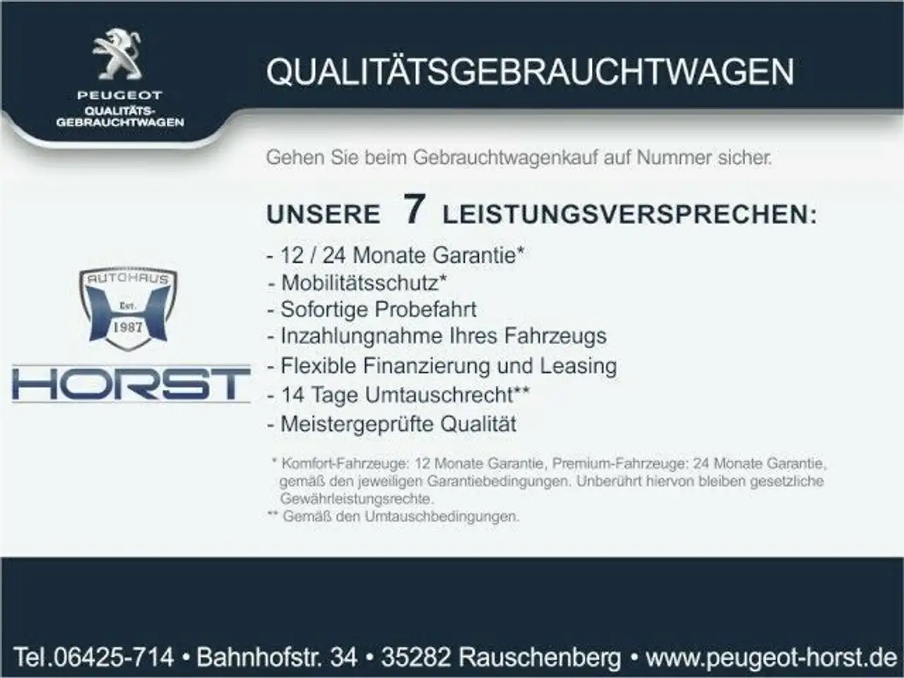 Autohaus Horst - Peugeot Servicepartner mit Vermittlungsrecht und Autofit Mehrmarkenhändler - über 30 Jahre Peugeot Erfahrung und Mehrmarkenservice - www.auto-horst.com