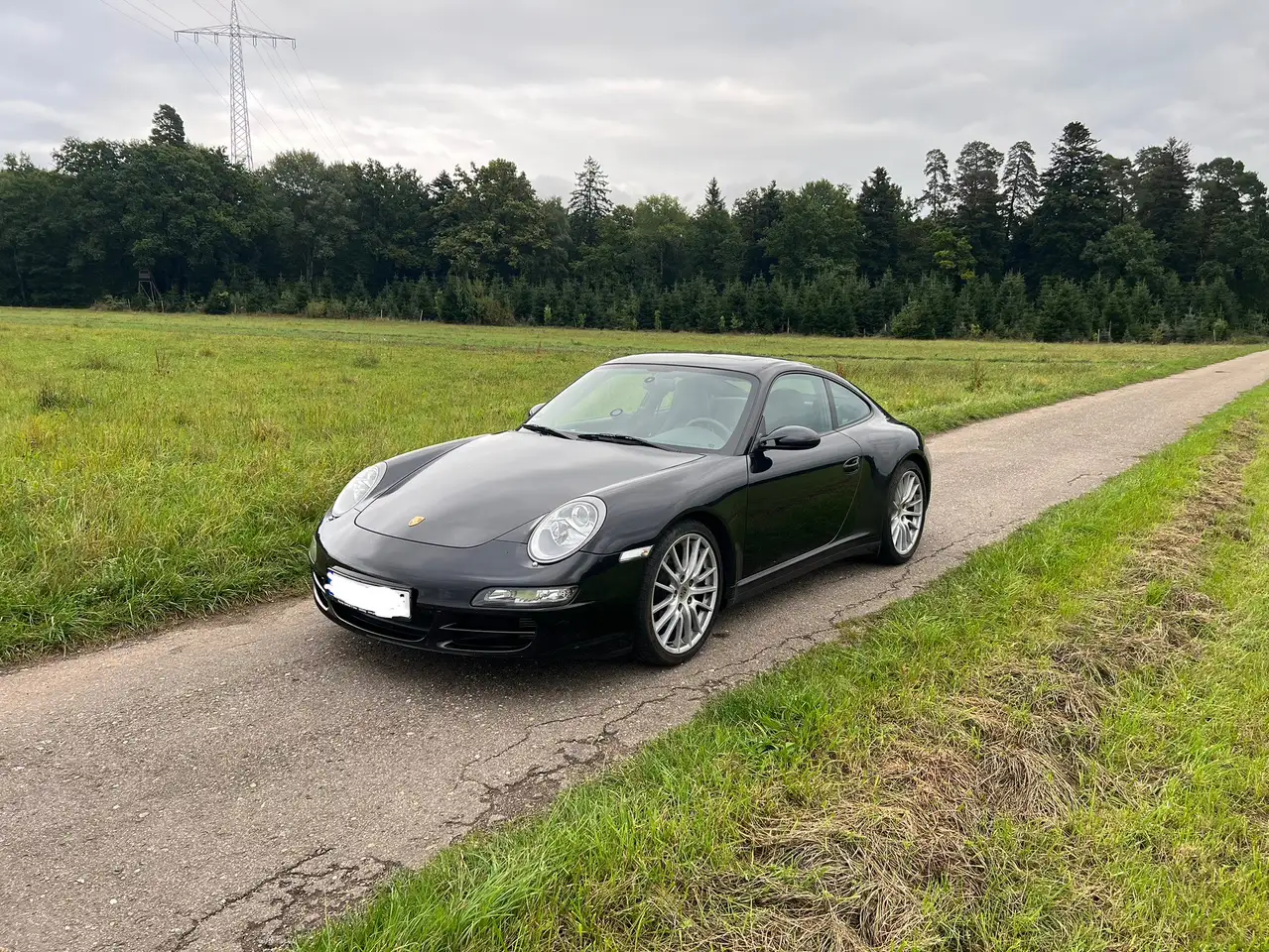 Zum Verkauf steht ein gepflegter Porsche 911 Carrera 4 (997.1) mit 6-Gang-Handschaltung aus dem Baujahr 2006 in klassischem Schwarz.