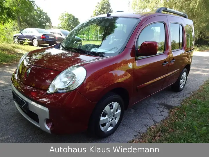 ...wirklich gut erhaltener Renault Kangoo 1.6 16V "LUXE" mit sehr seltenem Automatik-Getriebe (Euro 4 = Grüne Feinstaubplakette) aus 4. Hand (Dame JG 1948 & Herr JG 1957 & Dame JG 1964 & Herr JG 1938) mit original erst knapp 74 TKM! Deutsche Erstauslieferung (kein Re-Import), bereits Modelljahr 2011, 5-Sitzer, umfangreiche Ausstattung und wirklich in einem schönen unfallfreien Zustand, bis 2020 bzw. 55 TKM jährlich Scheckheft gepflegt (Service zeitbedingt fällig), unfallfrei (lediglich ein reparierter Bagatell-Blechschaden aus 2013 über € 3.133,- - Rechnung liegt vor), ohne extreme Gebrauchsspuren (normale kleinere Gebrauchsspuren sind natürlich vorhanden), Nichtraucher-/Garagenfahrzeug. Außen: Dunkelrot-Metallic, Innen: Stoffausstattung Grau/Anthrazit, Ausstattung: ESP, ABS, 6x Airbag, Klima-Anlage, Servolenkung, Multifunktions-Lederlenkrad, höhenverstellbares Lenkrad, Zentralverriegelung mit Fernbedienung, el. Wegfahrsperre, Colorverglasung (hinten zusätzlich abgedunkelt), 2x Schiebetür (links & rechts), 4x el. Fensterheber, el. Außenspiegel (el. anklappbar), Außentemperatur-Anzeige, Tempomat, diverse Dachablagen, Schminkspiegel, Cup-Holder, höhenverstellbarer Fahrersitz mit Sitzheizung, geteilt umlegbare Rückbank (60/40), umlegbare Rücklehne Beifahrersitz, alle Sitze (außer Fahrersitz) können zu einer großen ebenen "Liegefläche" umgelegt werden, Mittelarmlehne vorne, 2x Klapptische, 5x Kopfstützen, 3x ISOFIX-Kindersitzbefestigung, diverse Verzurrösen im Kofferraum, Gepäckraumabdeckung, große Heckklappe (elektrisch per Fernbedienung zu Öffnen), Heckfenster beheizbar, Heckwischer, Einparkhilfe hinten, Dachreling, Lichtsensor, Nebelscheinwerfer, weiße Blinker, 3. Bremsleuchte, Radio/CD/Navi (Infotainementsystem/Navi = defekt, d.h. aktuell Navi ohne Funktion - aber Radio/CD funktionieren!), 4x Sommerbereifung auf 15-Zoll Stahlfelgen mit Renault-Radkappen, evtl. 4x Winterreifen auf 15-ZToll Stahlfelgen (Aufpreis: EUR 200,-), vollwertiges Ersatzrad...