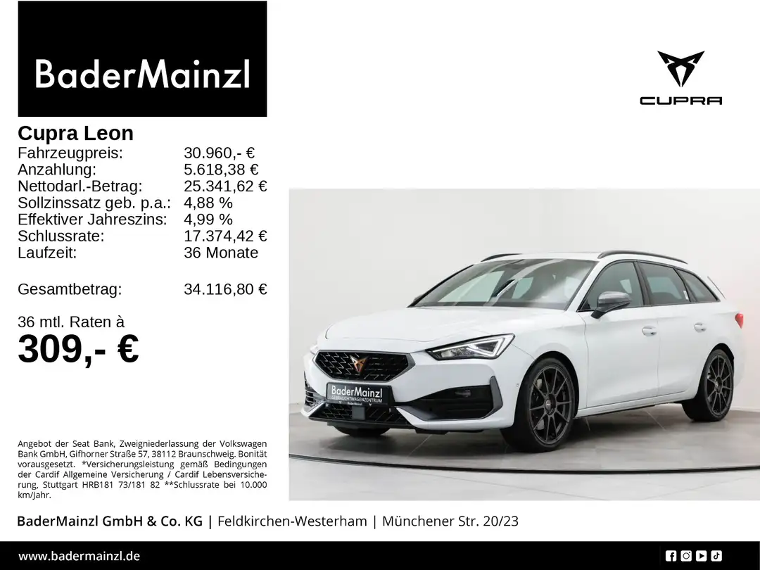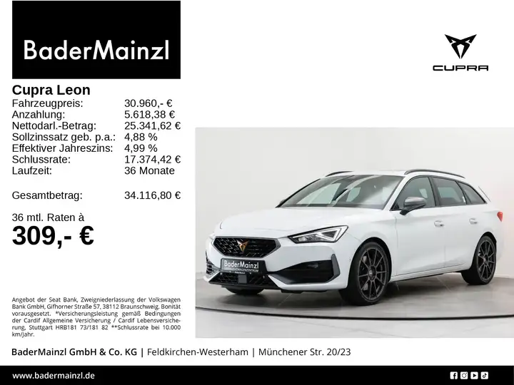 Angaben zum Hersteller: SEAT Deutschland GmbH, Cupra, Max-Planck-Str. 3-5, 64331 Weiterstadt, 06150-1079991, service(at)cupraofficial.de