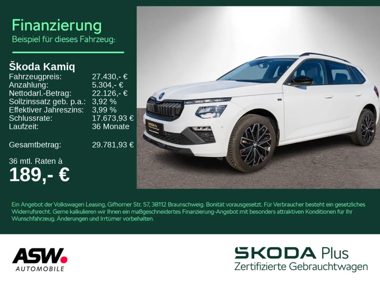 Diese Rechnung ist beispielhaft - Sie können mit dem Händler Ihre Wunschrate besprechen und eine individuelle. Finanzierung vereinbaren.