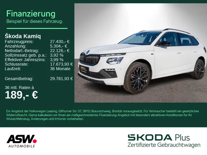 - Skoda Kamiq Tour 1.5 TSI DSG LED Navi PDC SHZ ACC AHK