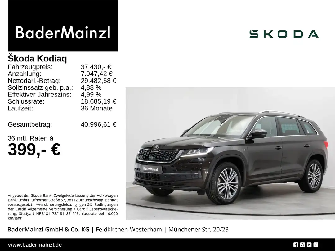 - Skoda Kodiaq 2.0 TSI 4x4 DSG L&K Stdhz 360° Navi Leder