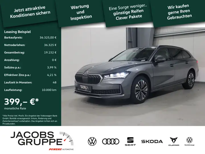 Anhängerkupplung Vorbereitung, Fahrassistenz-System: Spurwechselassistent inkl. Auspark-Assistent und Ausstiegswarnung, Außenspiegel und Türgriffe außen in Wagenfarbe, Dachreling, Scheinwerfer LED, Fahrassistenz-System: Einschaltautomatik für Fahrlicht (Fahrlichtassistent), Lichtassistent (Coming Home, Leaving Home), Fahrassistenz-System: Verkehrszeichenerkennung, Heckleuchten LED, Licht- und Regensensor, Heckscheibenwischer, Fensterzierleisten schwarz matt, Stoßfänger vorn mit Unique Dark Chrom-Applikationen, Akustikglas Türscheiben vorn, Seitenscheiben hinten und Heckscheibe abgedunkelt (SunSet), Radioempfang digital (DAB+), 9 Lautsprecher, Freisprechanlage Telefon mit Bluetooth, USB-Schnittstelle vorn (2-fach, Typ C), USB-Ladeanschlüsse (2-fach, Typ C) für 2.Sitzreihe, Wireless SmartLink, Kombiinstrument digital (virtual cockpit plus), Bedienschalter Digitale Drehregler (Smart Dials), Infotainment-System mit 13" Display, Einparkhilfe vorn und hinten, Reifendruck-Kontrollsystem, Innenausstattung: Dekoreinlagen Grau (Metall-Optik), Knieairbag Fahrerseite, Geschwindigkeits-Regelanlage (Tempomat) inkl. Geschwindigkeits-Begrenzeranlage, Airbag Fahrerseite, Airbag Beifahrerseite, Seitenairbag vorn mitte (Center-Airbag), Kopf-Airbag-System, Seitenairbag vorn, Airbag Beifahrerseite abschaltbar, Mittelarmlehne vorn, Gepäcksicherung / Gepäckbefestigung (Cargo-Elemente), Dachhimmel grau, Klimaanlage Climatronic 3-Zonen, Luftzusatzheizung elektrisch, Sitzheizung vorn, Rücksitzlehne geteilt/klappbar (1/3-2/3), Lehnenentriegelung der Rücksitzlehne im Kofferraum, Fensterheber elektrisch vorn + hinten, Schließ-/Startsystem Kessy, Funkschlüssel (3) klappbar, Warnanlage für Sicherheitsgurte, Fahrer-/Beifahrerseite, Warnanlage für Sicherheitsgurte hinten, Insassen-Schutzsystem proaktiv, Fußraumbeleuchtung vorn LED, Fußraumbeleuchtung vorn und hinten LED, Innenraumbeleuchtung LED, Kofferraumbeleuchtung, Innenspiegel mit USB-Anschluss (Typ C), Sonnenblenden mit Spiegel (LED-Beleuchtung), Wegfahrsperre, Vorbereitung für Alkohol-Wegfahrsperre (Alcolock), Steckdose (12V-Anschluß) im Koffer-/Laderaum, Steckdose (12V-Anschluß) in Mittelkonsole vorn, Isofix-Aufnahmen für Kindersitz an Rücksitz, Isofix-Aufnahmen für Kindersitz an Beifahrersitz, Ablagefach für Regenschirm, Rückfahrkamera, Frontkamera, Getriebe 7-Gang - Doppelkupplungsgetriebe DSG.