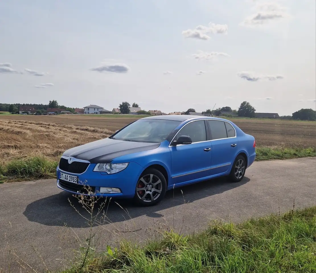 Verkauft wird dieser Skoda Superb. Das Auto ist schwarz mit blauer Folierung. Das Auto wird wie auf den Bildern zu sehen ist verkauft. TÜV kann auf Wunsch neu gemacht werden bei Übernahme der Kosten.