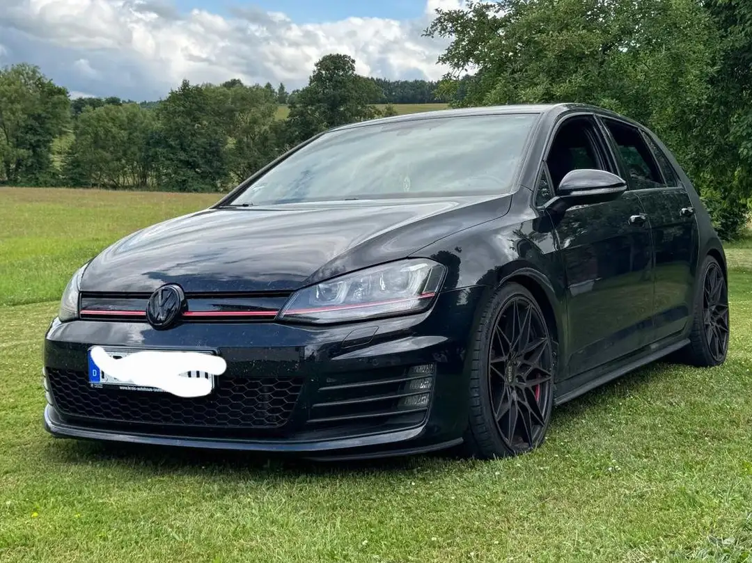 Verkaufe schwerzen Herzen meinen VW Golf 7Gti wegen neues Hobby einen Kombi.Das Auto hat ein H&R Gewindefahrwerk verkauft und 19" Mam B2 Felgen Winter in schwarz wie Sommer in rot schwarz siehe Bilder verbaut. Alles ist natürlich eingetragen. Fahrzeug wurde an beiden Seiten an der C Säule schwarzmatt Foliert mit Gti vom Vorbesitzer. Laut Vorbesitzer ist der Lack darunter in Ordnung. 3 Hand. Scheckheft gepflegt letzte Grosse Inspektion