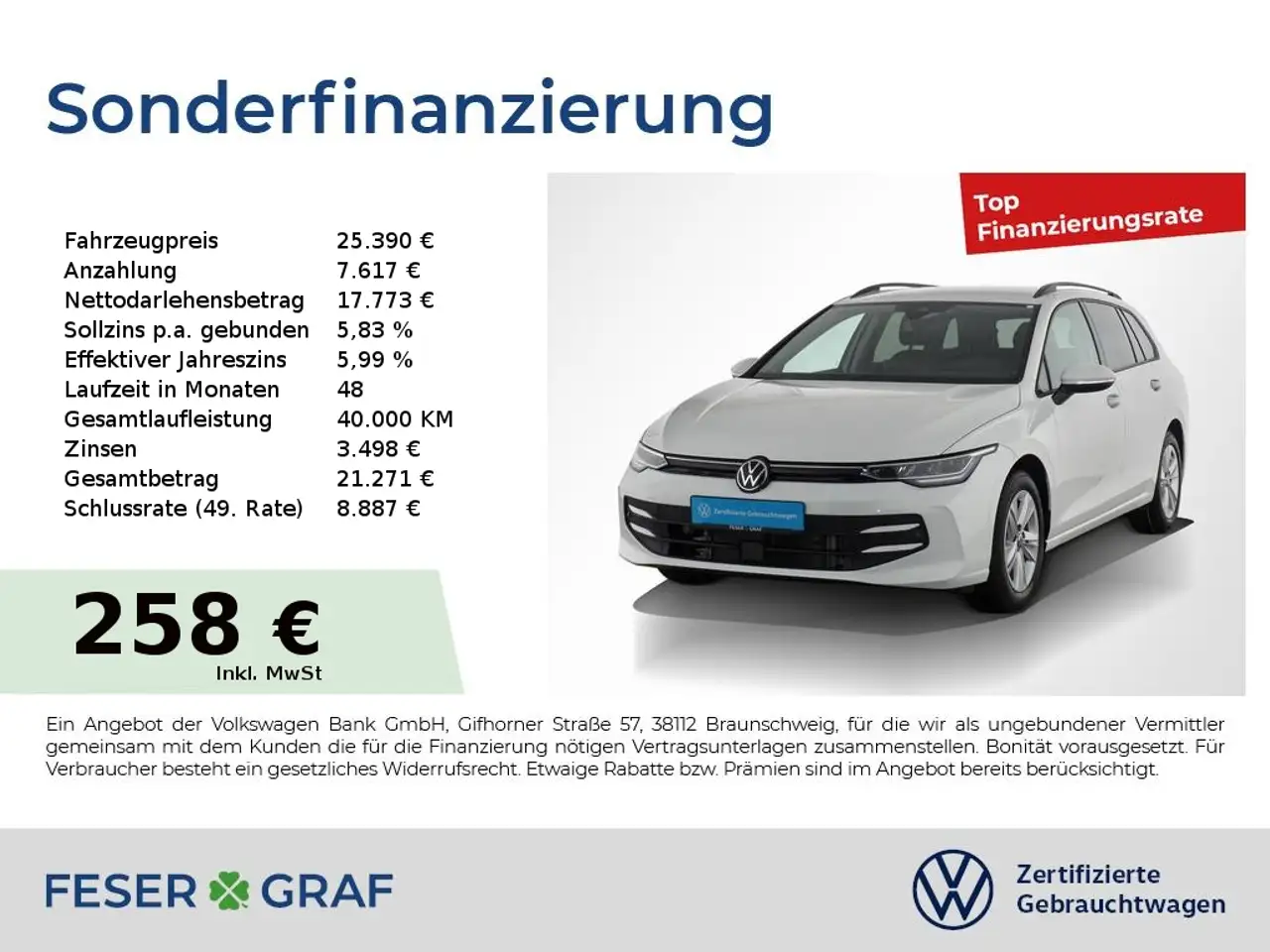 - Unter Raten verstehen wir den indikativen monatlichen Betrag bezogen auf das ausgeschriebene Finanzierungsbeispiel. Wir empfehlen dem Verbraucher, die Anzeige sorgfältig zu lesen. Der Verbraucher kann verschiedene Zahlungs- und/oder Finanzierungsformen bewerten, indem er den Werbetreibenden oder andere Finanzinstitute kontaktiert.