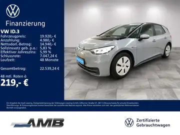 - Volkswagen ID.3 Pure LED/ACC/Navi/Sitzhzg/Lederlenkrad