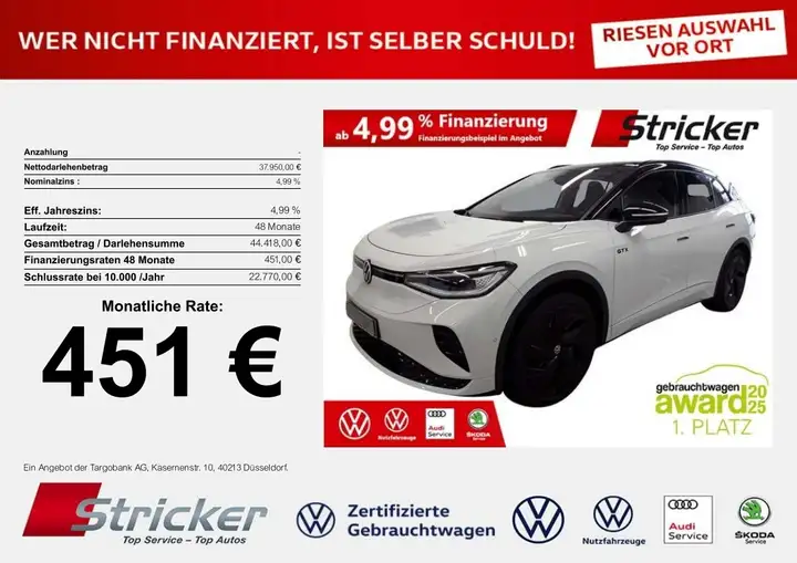 - Volkswagen ID.4 GTX 220/77 451,-ohne Anzahlung AHK Pano Top-Sport