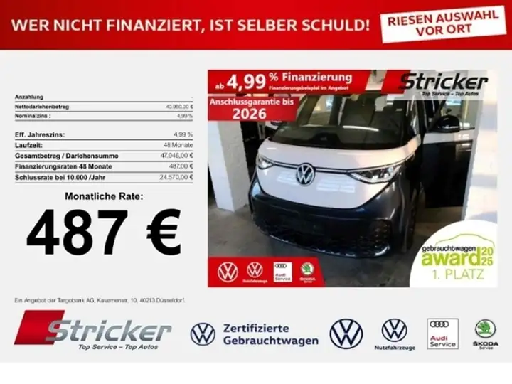 - Volkswagen ID. Buzz Pro KR 150/77 487,-ohne Anzahlung Navi ACC Kamera