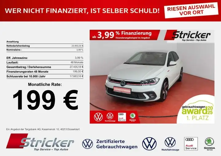 Volkswagen PoloGTI 2.0TSI DSG 199,-ohne Anzahlung ACC App-Connec