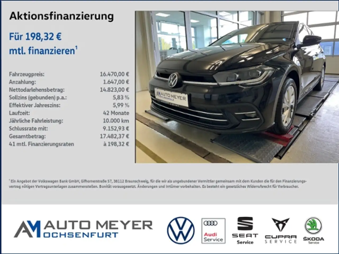 - Unter Raten verstehen wir den indikativen monatlichen Betrag bezogen auf das ausgeschriebene Finanzierungsbeispiel. Wir empfehlen dem Verbraucher, die Anzeige sorgfältig zu lesen. Der Verbraucher kann verschiedene Zahlungs- und/oder Finanzierungsformen bewerten, indem er den Werbetreibenden oder andere Finanzinstitute kontaktiert.