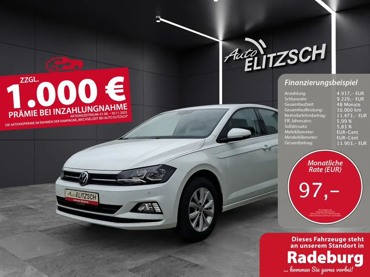 - Unter Raten verstehen wir den indikativen monatlichen Betrag bezogen auf das ausgeschriebene Finanzierungsbeispiel. Wir empfehlen dem Verbraucher, die Anzeige sorgfältig zu lesen. Der Verbraucher kann verschiedene Zahlungs- und/oder Finanzierungsformen bewerten, indem er den Werbetreibenden oder andere Finanzinstitute kontaktiert.