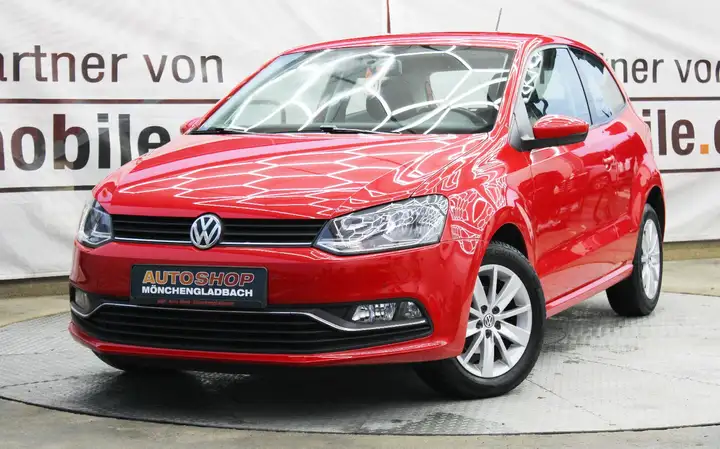 Dieser gepflegte VW Polo aus dem Jahr 2015 präsentiert sich in attraktivem Rot-Metallic mit schwarzem Stoffinterieur.