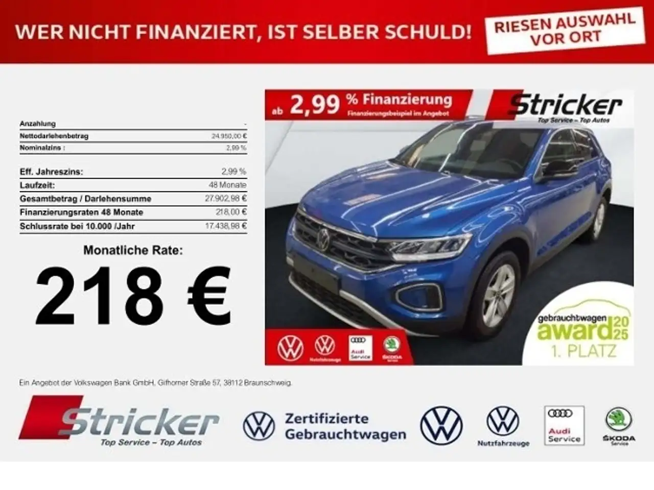 - Unter Raten verstehen wir den indikativen monatlichen Betrag bezogen auf das ausgeschriebene Finanzierungsbeispiel. Wir empfehlen dem Verbraucher, die Anzeige sorgfältig zu lesen. Der Verbraucher kann verschiedene Zahlungs- und/oder Finanzierungsformen bewerten, indem er den Werbetreibenden oder andere Finanzinstitute kontaktiert.
