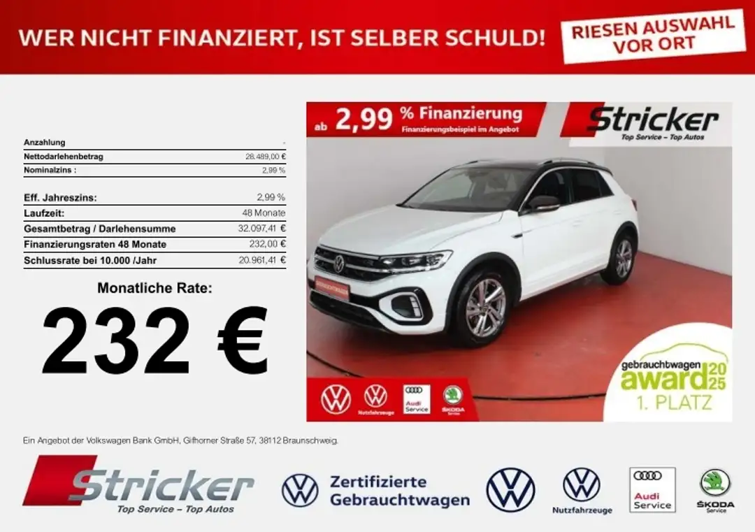 - Volkswagen T-Roc R-Line 1.5TSI DSG 232,-ohne Anzahlung Navi AHK Ka