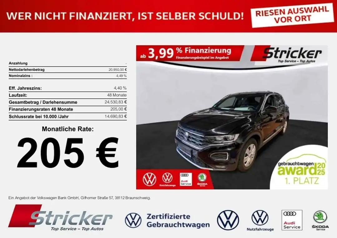 Volkswagen T-RocSport 1.5TSI DSG 205,-ohne Anzahlung ACC Sitzheiz