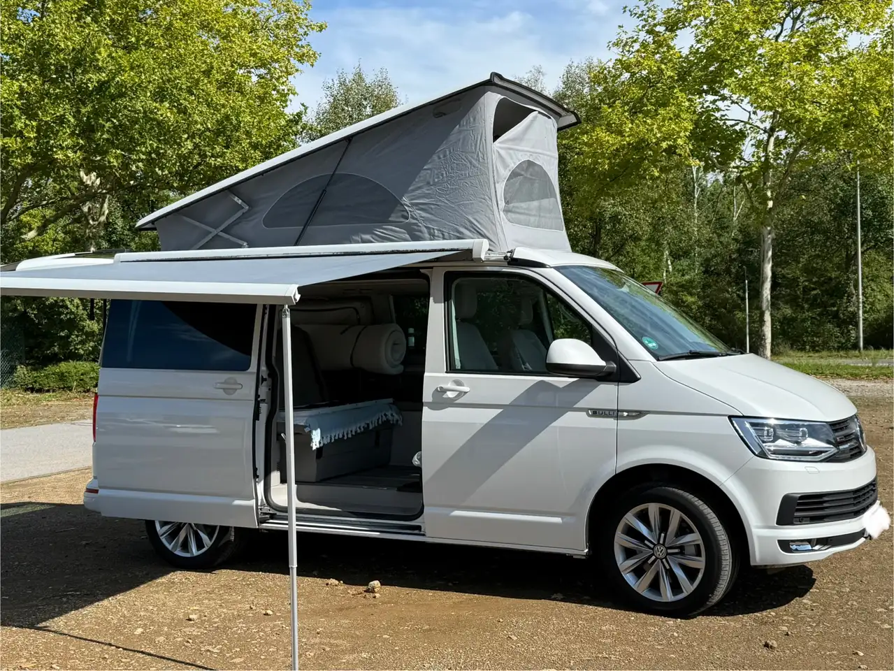 Zubehör:Original VW Fahrradgepäckträger (Heckträger, bis zu 4 Fahrräder)Isabella freistehendes Vorzelt Air X-tension (unbenutzt, OVP) mit KopplungstunnelVanEssa Packtaschen 50 l für Rückfenster (beide Seiten)Custom Heckausbau (vom Schreiner) mit drei Bereichen - passend für Euroboxen, Getränkeboxen oder kompakte Campingtoilette, rechtsseitig Auszug mit Schwerlastschienen mit Platz für 2-Flammengaskocher, Geschirr und Kochgeschirr (regengeschützt kochen unter der Heckklappe)Upgegradete Matratzen für oben und unten (CaliBed) (jeweils 120cm breit), + 1 zusätzlicher Topper