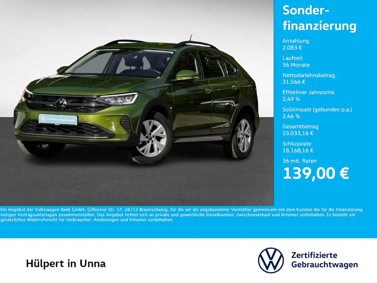 - Unter Raten verstehen wir den indikativen monatlichen Betrag bezogen auf das ausgeschriebene Finanzierungsbeispiel. Wir empfehlen dem Verbraucher, die Anzeige sorgfältig zu lesen. Der Verbraucher kann verschiedene Zahlungs- und/oder Finanzierungsformen bewerten, indem er den Werbetreibenden oder andere Finanzinstitute kontaktiert.