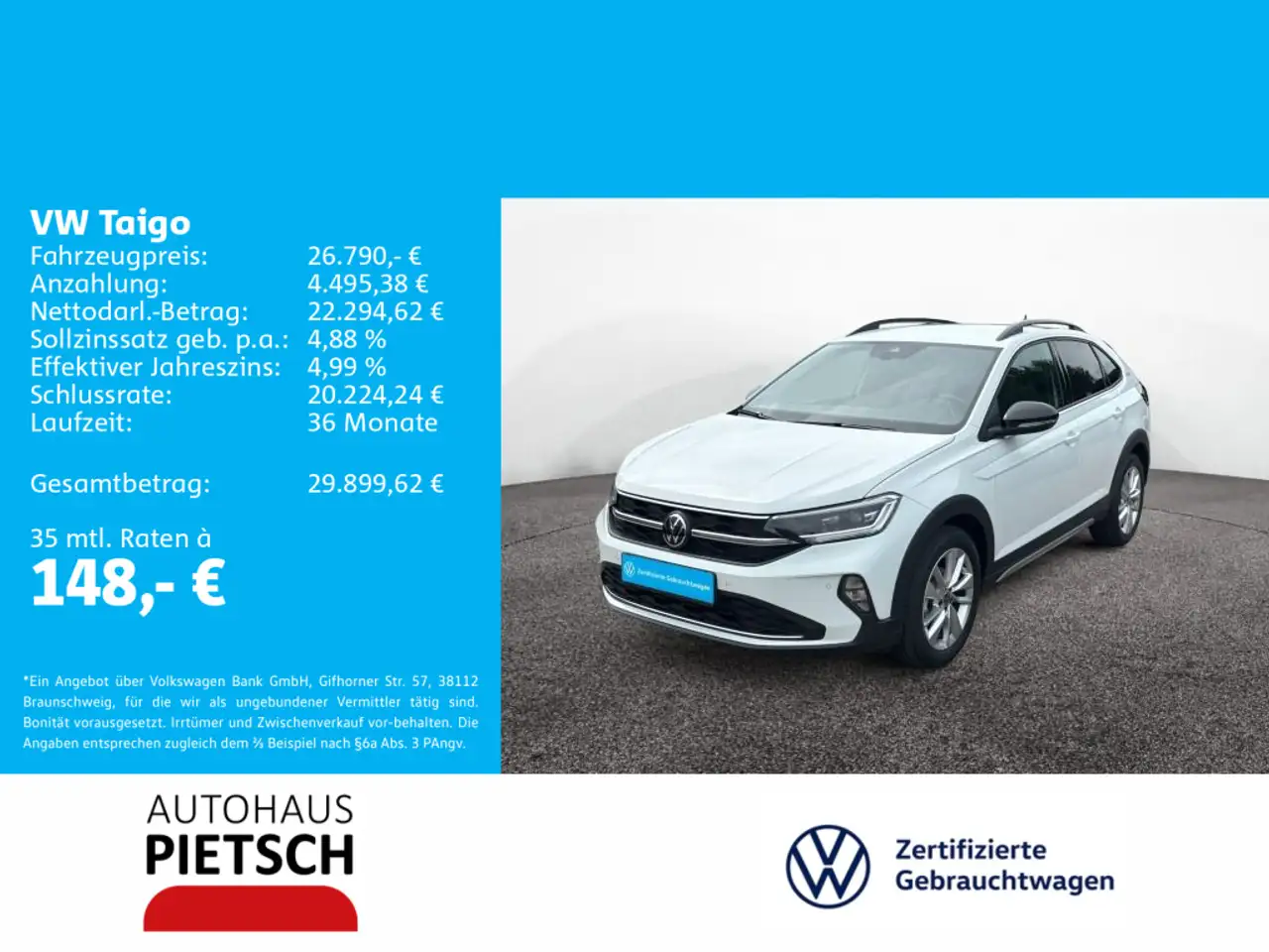- Unter Raten verstehen wir den indikativen monatlichen Betrag bezogen auf das ausgeschriebene Finanzierungsbeispiel. Wir empfehlen dem Verbraucher, die Anzeige sorgfältig zu lesen. Der Verbraucher kann verschiedene Zahlungs- und/oder Finanzierungsformen bewerten, indem er den Werbetreibenden oder andere Finanzinstitute kontaktiert.