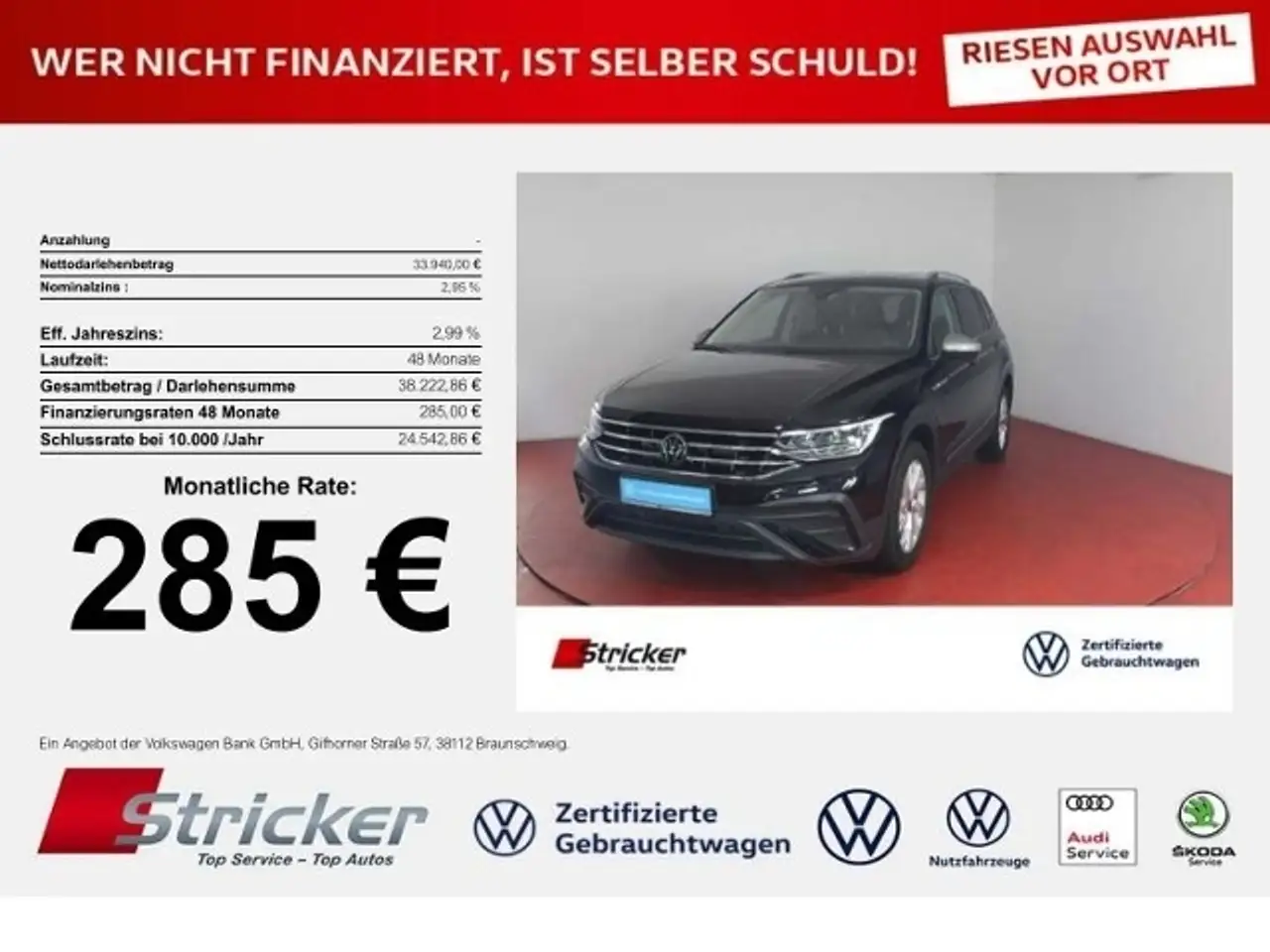 - Volkswagen Tiguan Allspace 2.0TDI DSG 285,-ohne Anzahlung Navi AHK 7-Sitzer