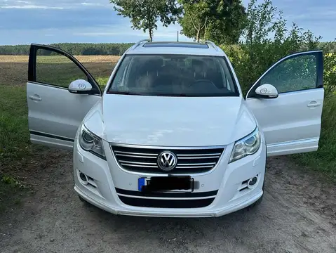 Wir verkaufen unseren weißen Tiguan 2.0 TSI 4 Motion R-Line.