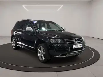 Entdecken Sie diesen gepflegten VW Touareg aus dem Jahr 2006 mit Vollausstattung. Der leistungsstarke 3.0 Liter Dieselmotor mit 224 PS bietet dank Allradantrieb optimale Fahreigenschaften für jedes Terrain. Die schwarze Metallic-Lackierung harmoniert perfekt mit dem schwarzen Lederinterieur und unterstreicht den eleganten Charakter dieses SUVs.