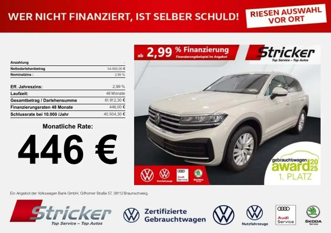 - Volkswagen Touareg Elegance 3.0TDI 446,-ohne Anzahlung AHK Luft App-