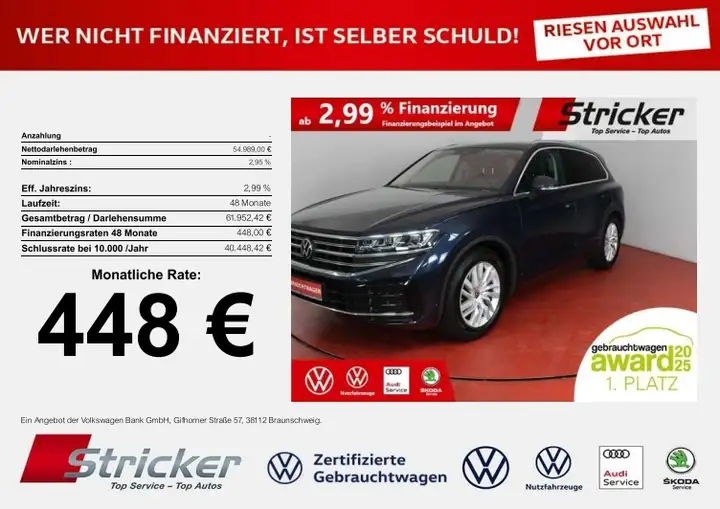 Volkswagen TouaregElegance 3.0TDI 448,-ohne Anzahlung AHK Luft App-