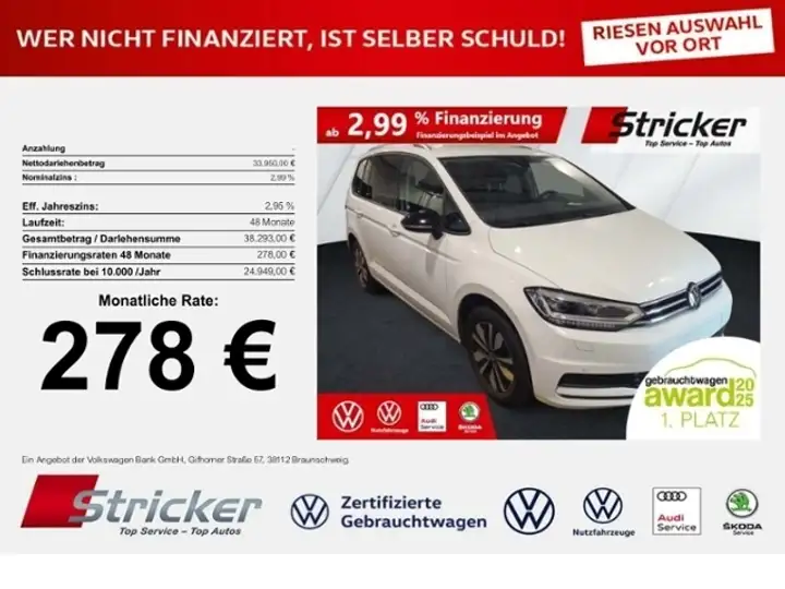 Volkswagen TouranGoal 2.0TDI DSG 278,-ohne Anzahlung 7-Sitzer AHK
