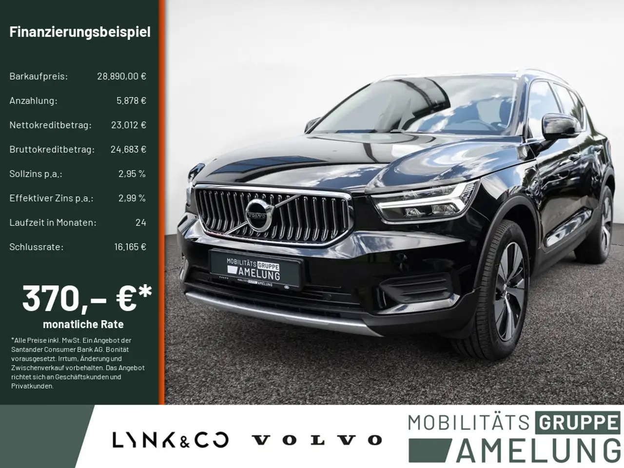 *Ein Sonderprogramm SB-Finanzierungsbeispiel der Santander Consumer Bank AG, Santander Platz 1, 41061 Mönchengladbach für Privatkunden und Geschäftskunden: 370,38 EUR monatl. Rate, 2,99 Prozent eff. Jahreszins bei 24 Monaten Laufzeit, einer Anzahlung von 5.878,00 EUR und einer Schlussrate von 16.164,50 EUR. (Sollzins gebunden p.a. 2,95 Prozent, Gebühren 0,00 EUR, Bruttokreditbetrag: 24.683,17 EUR, Nettokreditbetrag: 23.012,00 EUR)