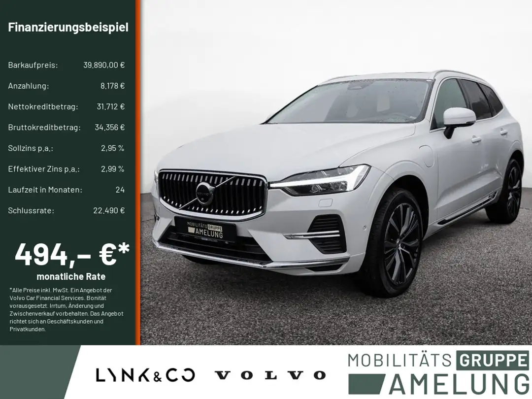 *Ein Aktions Zielfinanzierung-Finanzierungsbeispiel der Volvo Car Financial Services, Santander-Platz 1, 41061 Mönchengladbach für Privatkunden und Geschäftskunden: 494,43 EUR monatl. Rate, 2,99 Prozent eff. Jahreszins bei 24 Monaten Laufzeit, einer Anzahlung von 8.178,00 EUR, einer jährlichen Laufleistung von 10.000 km und einer Schlussrate von 22.489,50 EUR. (Sollzins gebunden p.a. 2,95 Prozent, Gebühren 0,00 EUR, Kosten für Ratenabsicherung 0,00 EUR, Bruttokreditbetrag: 34.355,85 EUR, Nettokreditbetrag: 31.712,00 EUR)