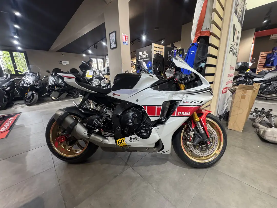 Superbe R1 60th 11/2022 2500 kms, premire main! Moto trs quipe, haut de gamme, faible kilomtrage, prte tomber les chronos! Etriers freins av Brembo GP4RX Matre cylindre de frein avant 19 RCS Corsa Corta Durites av/ar Tubo Disques de frein av Brembo HPK-T-Drive 320 mm Levier embrayage Brembo Obturateurs rtros Obturateus repose pieds Rtroviseurs Rizoma Tampons de protection R&G Grille de protection de radiateur Commandes recules lightech Carter pignon de sortie de boite Couvre rservoir carbone Cache rservoir carbone Protection bras oscilliant carbone Protection de cadre carbone Passage de roue carbonne Capot de selle Bulle Protection carter alternateur Protection carter allumage Protection carter embrayage Stomp grip