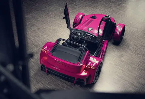 - Beim Donkervoort D8 handelt es sich um ein Lifestyle-Fahrzeug mit hoher Motorleistung und minimalistischer Ausstattung.