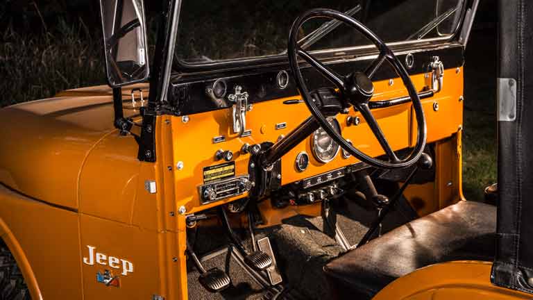 Wie bei allen anderen Modellen dieses Geländewagens auch lassen sich die Windschutzscheiben bei Bedarf nach vorne klappen und auf der Motorhaube fixieren. Einen gebrauchten Jeep CJ-5 finden interessierte Käufer auf dem Markt recht unkompliziert.