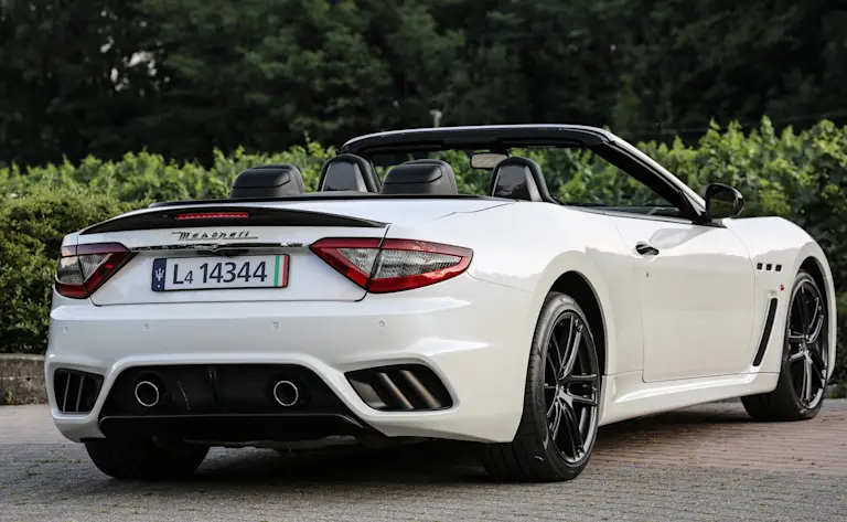 Das elegante Cabriolet von Maserati präsentiert sich mit eleganten Proportionen und einer für seine Klasse typischen Außengröße. Im Innenraum bietet es vorne großzügigen Platz mit komfortabler Bein- und Kniefreiheit. Die Rückbank entspricht dem 2-Sitz-Coupé-Standard und eignet sich für Erwachsene auf Kurzstrecken, wenn auch mit begrenztem Raumangebot. Der Kofferraum fällt im Cabrio-Vergleich eher klein aus, reicht aber für zwei Weekender. Praktische Aspekte wie umklappbare Rücksitze oder eine dritte Sitzreihe sucht man vergebens. Insgesamt zeigt sich das Fahrzeug im Innenraum geräumiger als ein Porsche 911 Cabrio, kann aber in Sachen Alltagstauglichkeit nicht ganz mit einem Bentley Continental GTC mithalten.