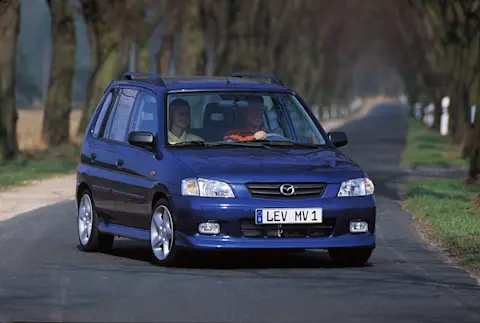 Lange bevor kompakte SUVs die Straßen eroberten, hatte Mazda mit dem Demio (Baureihe DW) eine clevere Lösung für den Stadtverkehr parat. Von 1998 bis 2003 in Europa verkauft, kreuzte der Demio die Grundfläche eines Kleinwagens mit dem hohen Dach eines Vans. Das Ergebnis ist ein Raumwunder auf nur 3,81 Metern Länge, das sich bis heute vor allem an absolute Schnäppchenjäger, Fahranfänger und Pragmatiker richtet. Die Sitze lassen sich zur 2-Meter-Liegewiese umklappen, die Rückbank ist verschiebbar. Features, die heute in dieser Klasse extrem selten sind.