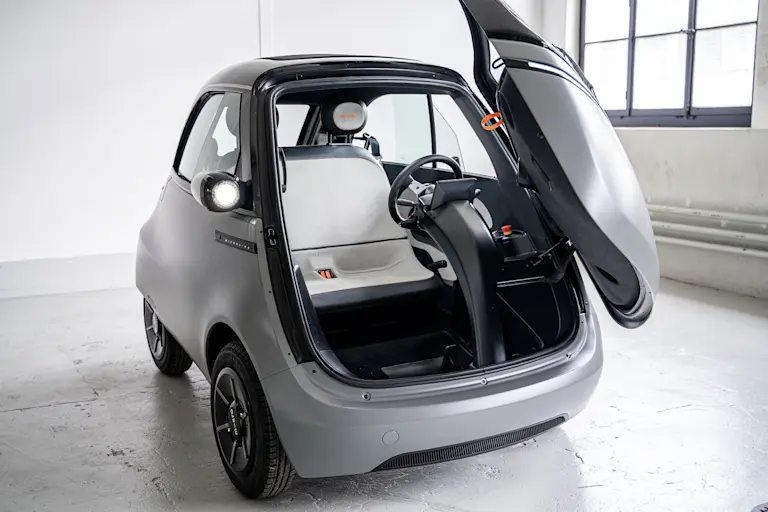 Für ein Elektrofahrzeug der Kategorie L7e ist der Microlino 2.0 nicht günstig: In Deutschland ist der Wagen zum Preis ab knapp 15.000 Euro erhältlich, wofür man auch einen attraktiven Gebrauchtwagen mit beliebiger Antriebsform kaufen kann. Das Basismodell lässt sich mit schicken Radkappen, Schiebedach, einem Premiumpaket für den Innenraum oder auch einer geschmackvolleren Lackierung aufwerten, so ist man schnell 17.000 Euro los. Für die nächsthöhere Ausstattung "Dolce" bildet dieser Betrag indes den Startpunkt, während die Preise für die Topversion "Competizione" bei etwa 19.200 Euro beginnen. Wer mit dem limitierten Sondermodell Pioneer Series liebäugelt, zahlt knapp 21.000 Euro.