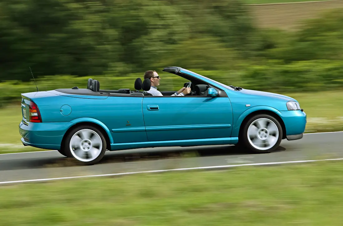 Der Opel Astra G kam im Jahr 1998 auf den Markt, ab 2001 dann auch als Cabriolet. Zur Serienausstattung zählte unter anderem ein elektrisches Stoffverdeck. Im Innenraum konnten zwei größere Personen problemlos mitreisen. Insgesamt überzeugte das Cabrio mit einer sehr guten Wendigkeit, da die Karosserie weniger als 4,3 Meter lang und nur knapp 1,7 Meter breit war.Dank einer speziellen Fertigung stand das maximale Kofferraumvolumen von 330 Litern sowohl bei geöffnetem als auch bei geschlossenem Dach zur Verfügung.