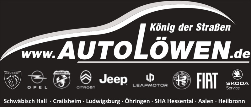 Eine löwenstarke Autofamilie! Herzlich willkommen bei den AUTOLÖWEN. Dem König der Straßen Erleben Sie die Faszination Automobil mit einer löwenstarken Auswahl an 8 Standorten. Vom Raum Schwäbisch Hall , Schwäbisch Hall-Hessental, über Ludwigsburg, In Aalen, Öhringen, Crailsheim und Heilbronn bieten wir Ihnen mit den Marken Fiat, Fiat Professional, Abarth, Alfa Romeo, Peugeot, Citroen, Opel und Jeep starke Marken und einen starken Service, in Schwäbisch Hall-Hessental mit einer zusätzlichen, eigenständigen Karosserieabteilung inkl. Lackierung für Unfallschäden. In unserem zweiten Betrieb in Ludwigsburg kümmern wir uns um Ihren Jeep oder Alfa Romeo. Auch als Partner für Jahreswagen, Tageszulassungen und Gebrauchtwagen unterschiedlicher Marken erfüllen wir gerne Ihre Autowünsche. Eine löwenstarke Autofamilie, seit über 30 Jahren ein Begriff in der Region. Lassen Sie sich bei der Suche nach Ihrem Wunschauto von unseren Verkaufsberatern individuell und fair beraten. Bei uns finden Sie eine Vielzahl an Top Angeboten zu Top Konditionen vor Ort oder online. Sie legen Wert auf eine qualifizierte und bedarfsgerechte persönliche Beratung rund um Ihr Fahrzeug? Dann sind Sie hier genau richtig! Bei uns wird der Servicegedanke groß geschrieben. Dazu gehört Freundlichkeit, hohe Kompetenz durch ständige Weiterbildung der Mitarbeiter, faire Preise und keine Kompromisse in Sachen Arbeitsqualität. Wir freuen uns auf Sie!