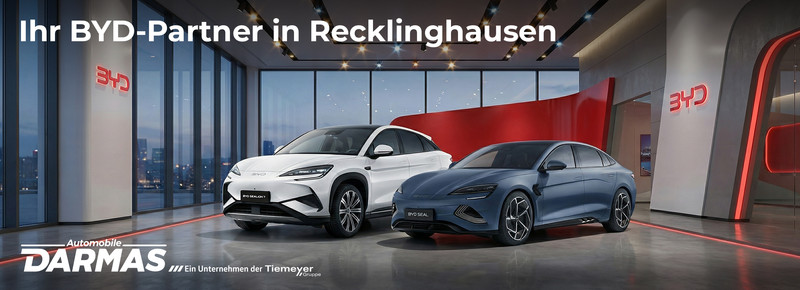 ÖffnungszeitenAutomobile Darmas – Ihr offizieller BYD Partner in Recklinghausen Sie interessieren sich für moderne Elektromobilität und innovative Technik? Dann sind Sie bei Automobile Darmas genau richtig. Als offizieller BYD Partner in Recklinghausen begleiten wir Sie auf dem Weg in die elektrische Zukunft. • Die neuesten BYD Modelle direkt vor Ort • Kompetente Beratung rund um E-Mobilität & Reichweite • Attraktive Finanzierungs- und Leasingangebote • Service, Werkstatt & Betreuung aus einer Hand • Erfahrung, Vertrauen und persönliche Beratung bei Automobile Darmas Erleben Sie die Marke BYD bei Automobile Darmas und entdecken Sie, wie einfach Elektromobilität heute sein kann. Mehr Informationen finden Sie auf 👉 www.darmas.de