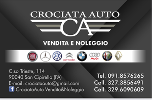 CROCIATA AUTO è un'azienda a gestione familiare che opera nel settore automobilistico da oltre 60 anni. Le nostre vetture sono controllate sotto ogni punto di vista prima di essere consegnate ai nuovi proprietari. Ci teniamo alla trasparenza e alla sincerità al fine di instaurare con la clientela un rapporto di fiducia a 360°. Offriamo ai nostri clienti il servizio di videochiamata su whatsapp. Le nostre vetture che non superano i 15 anni vengono consegnate con una garanzia convenzionale con validità 12 mesi in tutto il territorio nazionale, estendibile fino a 36 mesi, con moltissimi organi in copertura. Offriamo anche il servizio di vettura di cortesia se necessario. CROCIATA AUTO offre il servizio di AUTONOLEGGIO, troverete a disposizione vetture piccole, medie, grandi, station wagon, 6, 7, 9 posti. Possibilità su richiesta di portare la vettura a noleggio dove desidera il cliente in tutta la provincia di Palermo e di Trapani. Servizio TRANSFER porto, aeroporto, stazione.