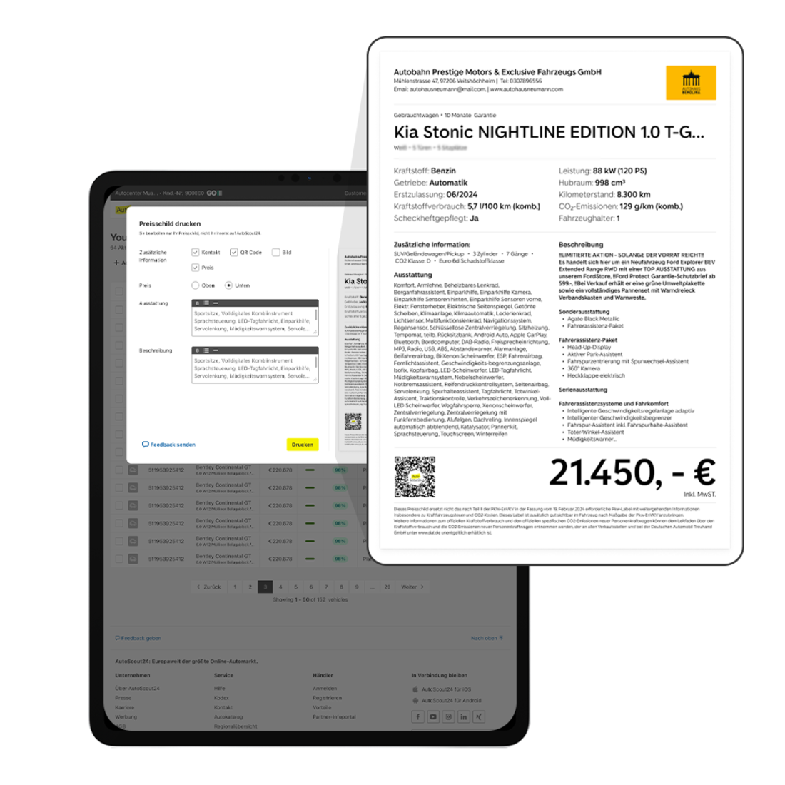 Ihre Preisschilder erstrahlen im neuen Design – klar, modern und leicht erfassbar. Drucken Sie sie jetzt direkt von der Fahrzeugdetailseite in nur wenigen Klicks aus.