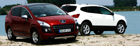 Seit Anfang 2007 gibt es den Qashqai, ein Stilmix aus Kompakt-Kombi und SUV – eigentlich ein Softroader. Verglichen mit dem 3008 wirkt er jedoch wie ein beinharter 4x4. Der Peugeot vermengt ebenfalls diverse Stile. Herausgekommen ist eine Art Van, der mit Offroader-Akzenten Robustheit vorgaukelt.