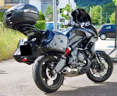 Die Kawasaki Reiseenduro ist immer dann die beste Wahl, wenn längere Touren nicht nur über befestigte Straßen, sondern auch in leichtes Gelände führen. Im Vergleich zur reinen Enduro bietet die Reiseenduro mehr Fahrkomfort, Möglichkeit zur Zuladung von Gepäck und eine höhere Reichweite. Kawasaki hat mit der Versys 1000 und der Versys 650 zwei Reiseenduros im Angebot. Die Versys 1000 ist mit einem flüssigkeitsgekühlten Vierzylindermotor mit 1.043 cm³ Hubraum ausgestattet, der 88,2 kW (120 PS) mit einem maximalen Drehmoment von 102 Nm leistet. Experten loben die Reiseenduro von Kawasaki für ihre Laufruhe. Das Fahrwerk ist komfortabel, eignet sich aufgrund des kurzen Federwegs aber in erster Linie für alle Arten von asphaltierten Untergründen. Für zusätzlichen Reisekomfort in der Kawasaki Reiseenduro sorgen Gummilager an Motor, Lenker- und Fußrastenhalterungen. Sie reduzieren störende Vibrationen. Weitere Vorteile einer gebraucht gekauften Reiseenduro sind die Koffer und Cases, die sich an den Seiten und am Hinterteil des Bikes befestigen lassen und viel zusätzlichen Stauraum bieten.