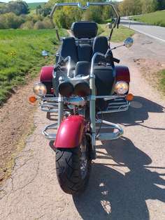 Etwas ganz Besonders ist das Bike Conversion. Vorn eine Triumph Rocket, ein Dreizylinder mit 2,3 Liter Hubraum, dahinter ein Standard-Trike. Das Ganze wirkt sehr harmonisch und kommt optisch einem Motorrad am nächsten.