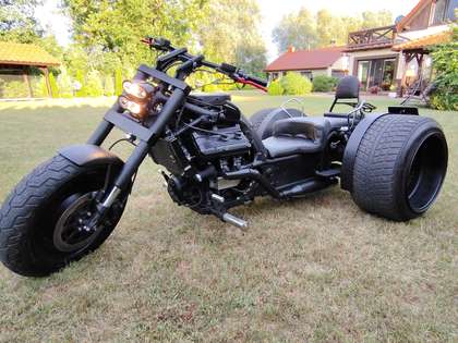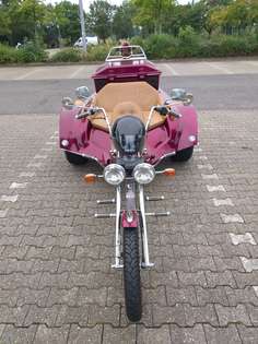 Etwas ganz Besonders ist das Bike Conversion. Vorn eine Triumph Rocket, ein Dreizylinder mit 2,3 Liter Hubraum, dahinter ein Standard-Trike. Das Ganze wirkt sehr harmonisch und kommt optisch einem Motorrad am nächsten.